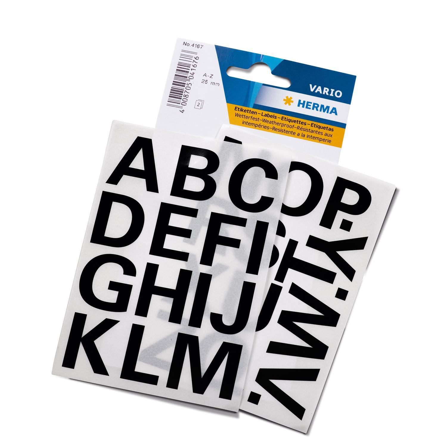 Märketikett Herma Vario 4167 Bokstäver A-Z 25mm, Svart, 2 ark/fp