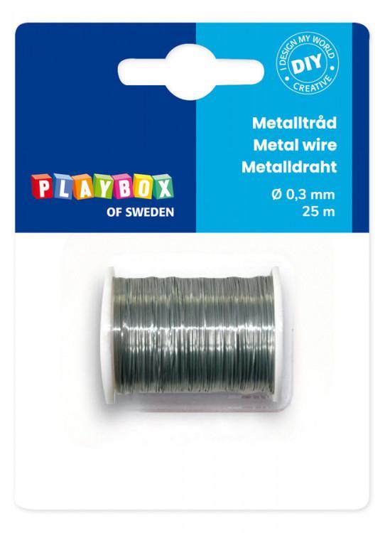 Metalltråd i metall som är 0,3 mm tjock och rullen innehåller totalt 25 meter tråd. Perfekt för pyssel och pynt.