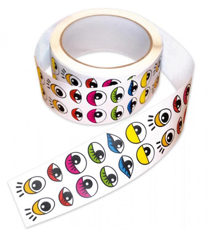 Stickers på rulle med ögonmotiv i olika färger och med olika uttryck. Det är roligt och effektfullt att sätta ögon på det mesta så det är bara att sätta igång. Självhäftande ögonklistermärken på rulle. Storlek på ögonen är ca 15 mm.