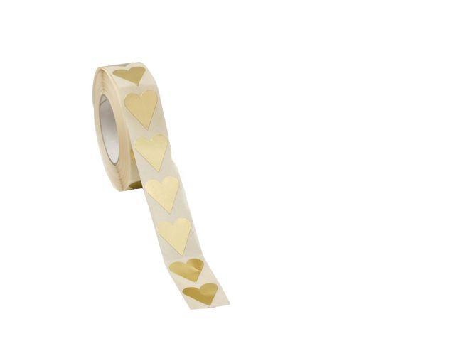 Stickers/Klistermärken på rulle, Hjärtan, Guld, 20x23mm, 1000 etiketter/rulle