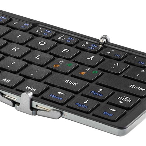 Ihopfällbart minitangentbord som är möjligt att vika ihop för att göra det ännu mindre vid transport. Trådlöst via Bluetooth. Anpassat för Windows, Android och iOS.