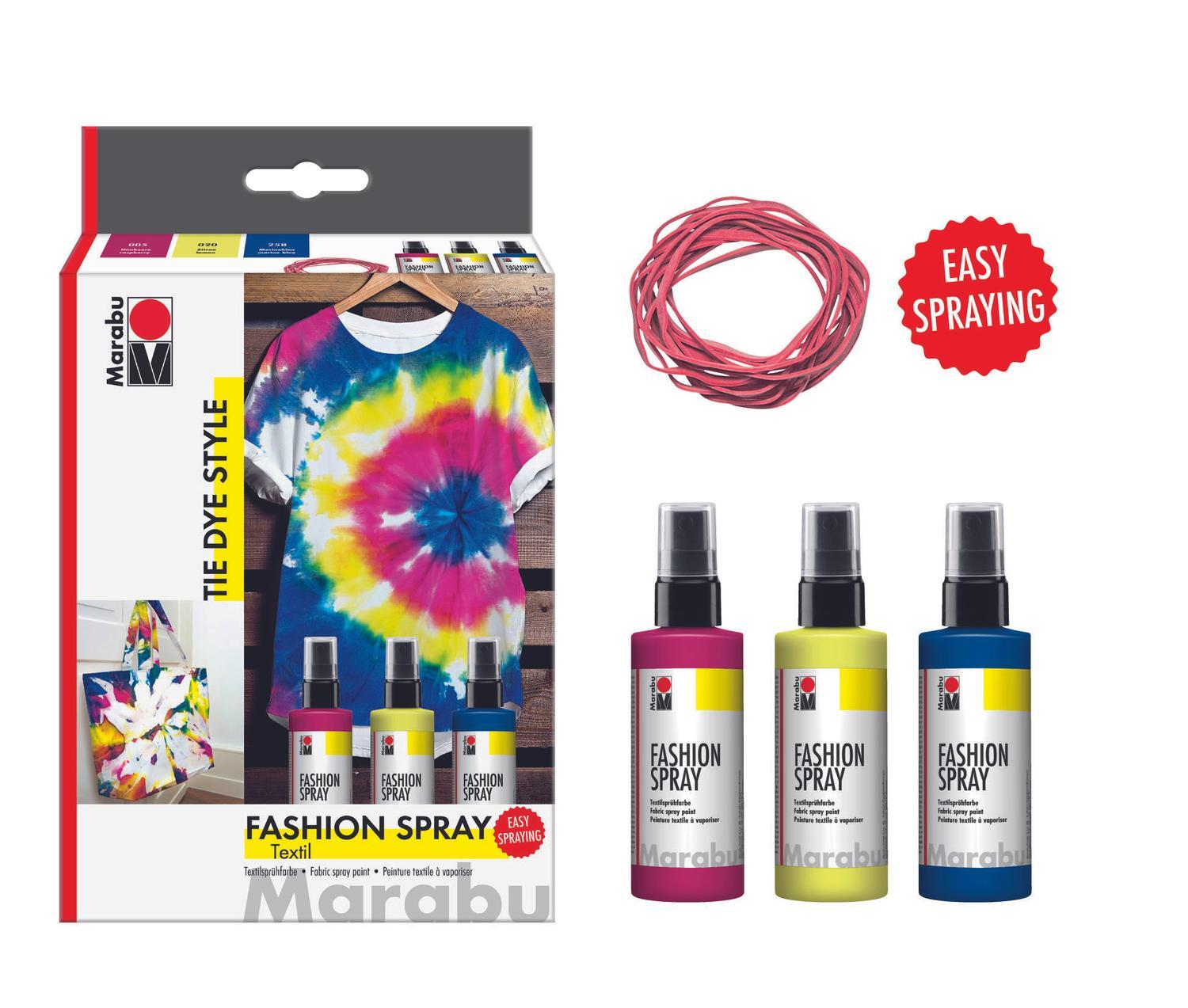 Textilsprayfärg-set: Textilfärg, sprayflaska Marabu Fashion Spray Set "Tie Dye", 3 x 100ml/fp