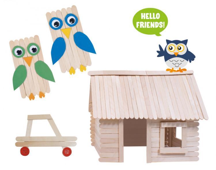 Pinnarna kan målas och sammanfogas fritt efter egen fantasi. Ett kreativt pyssel som passar alla. Det är bara fantasin som sätter stopp för hur du sätter ihop dem i ditt pyssel.