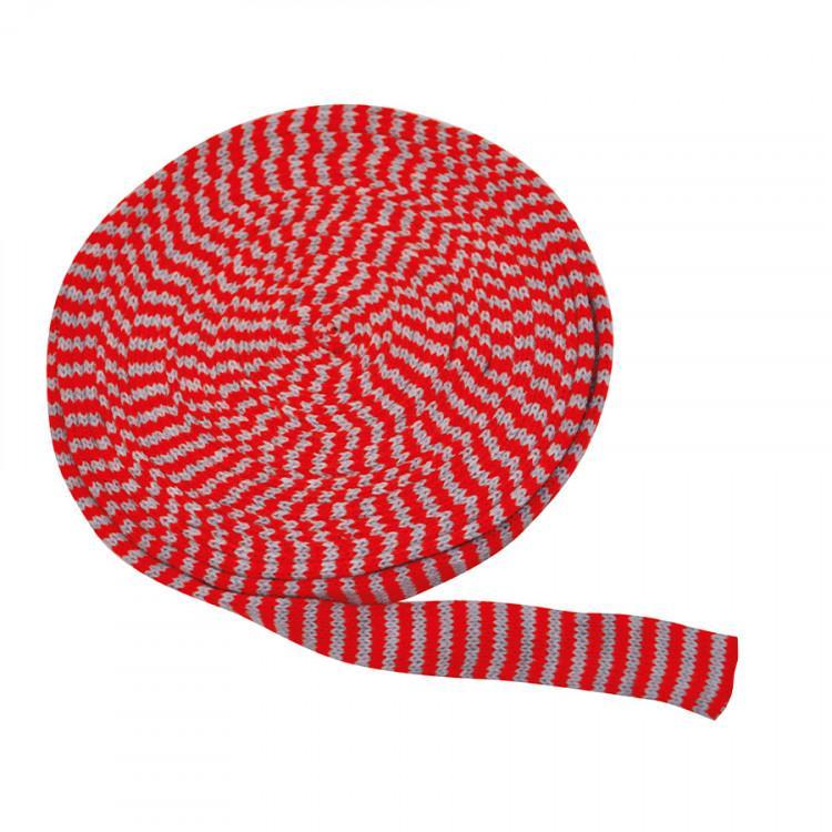 Tubstickad väv, bredd: 4cm, längd: 10m lång, randig, Röd/Grå